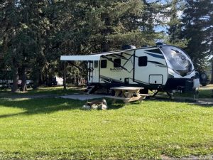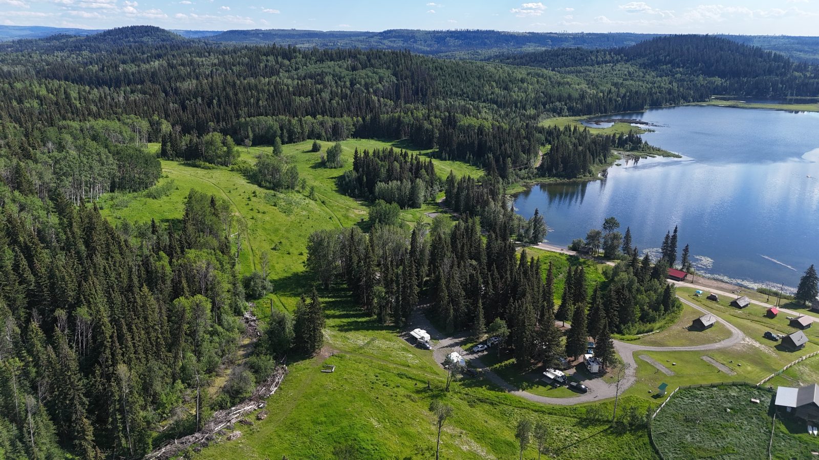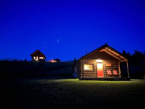 The resort offers log cabin rentals, as well as large serviced tent and RV campsites (30 amp electrical / water).